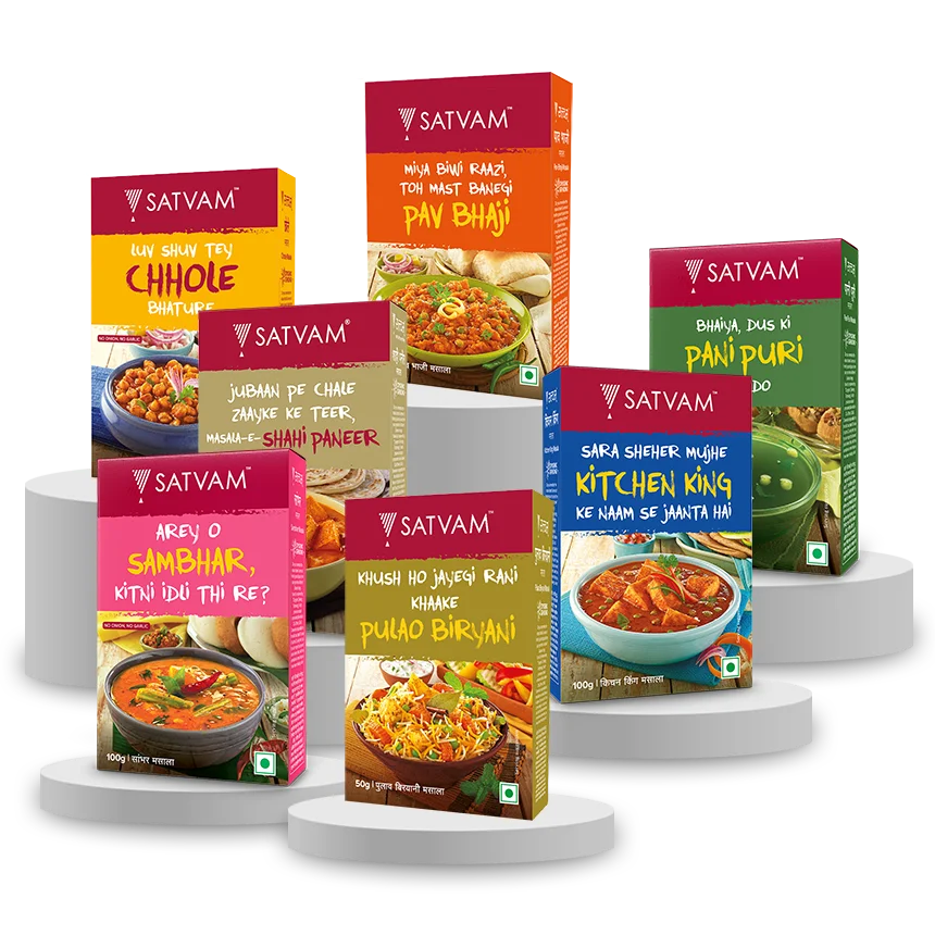 You know what heaven is? Its Pavbhaji made with Satvam Pavbhaji Masala. Pavbhaji is popular not only in India but world-wide. Satvam Pavbhaji Masala gives the exact balance between the spice-elements and extra ingredients in the pavbhaji. This masala makes Bhaji so flavourful and aromatic, you will feel like wondering in the streets of Amchi Mumbai!