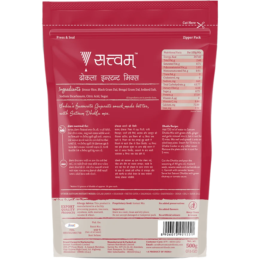 • Satvam Instant Dhokla Mix gives authentic Gujarati Dhokla taste.
