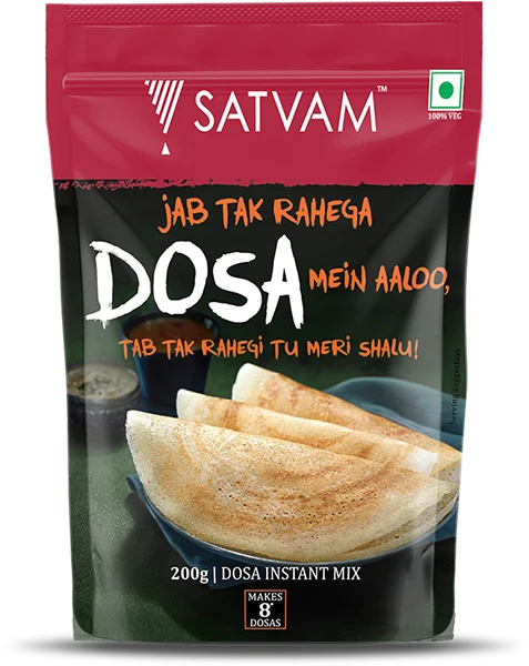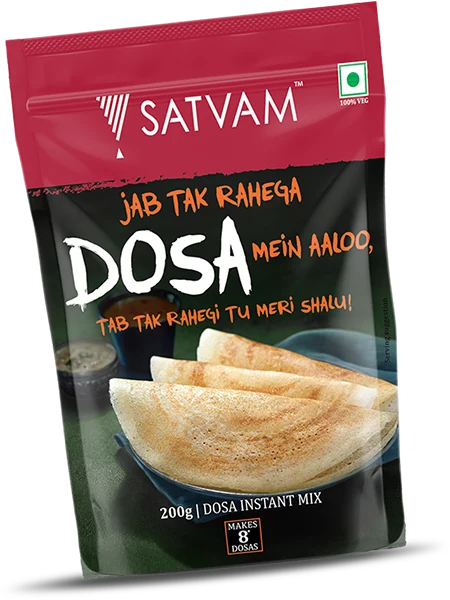 When it comes to authentic south Indian taste ask for Satvam Dosa Instant Mix. Satvam Dosa Instant Mix carries legacy & authenticity of South Indian Taste. Dosa is a pancake made from fermented rice flour and black gram based batter. The Dosa rice and black lentils are soaked overnight and then are ground to make a past which is then allowed to ferment overnight. The extensive preparation for Dosa batter can be minimized using Satvam Dosa Instant Mix, which gives you the finest Dosa with consistency and quality. A Ready to Cook & Easy to make mixture to prepare varieties of Dosa like Plain Crispy Dosa, Stuffed Masala Dosa, Mysore Masala Dosa etc. followed by mentioned recipe / cooking steps.