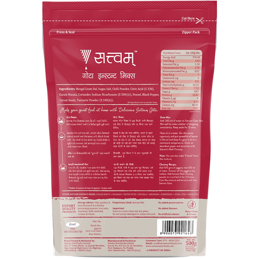 • Satvam Instant Dakor Gota Mix gives authentic Gujarati taste.