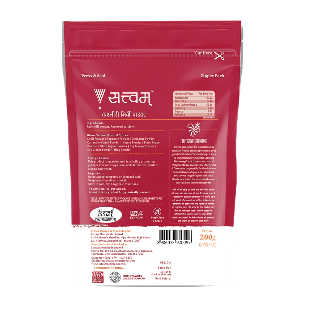 • Satvam Kashmiri Chilli Powder is grinded with cryogenic technology