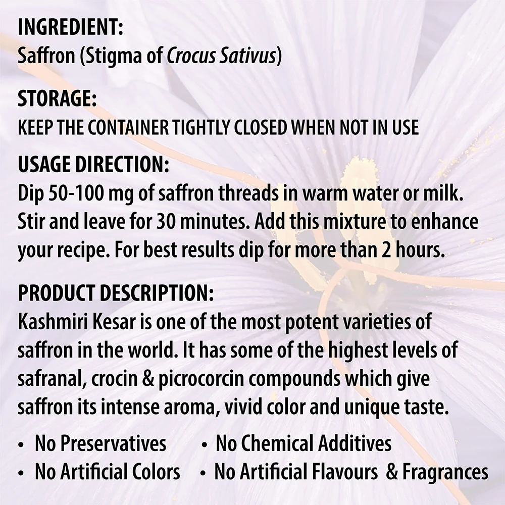 Kashmiri Kesar is one of the most potent varieties of saffron in the world. It has some of the highest levels of safranal, crocin & picrocorcin compounds which give saffron its intense aroma, vivid color and unique taste.