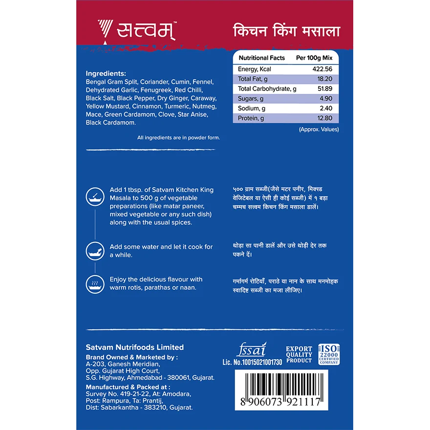 • Satvam Kitchen King Masala is an amazing blend of various spices