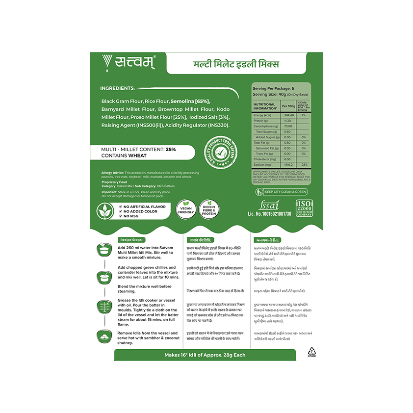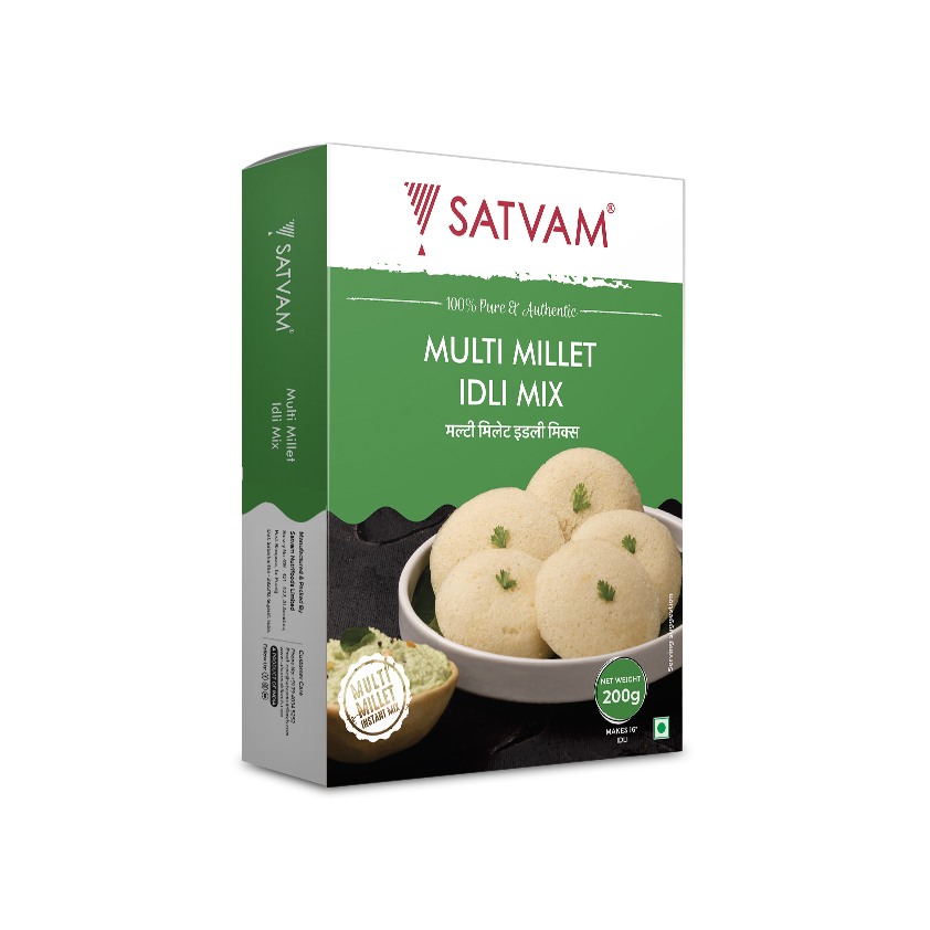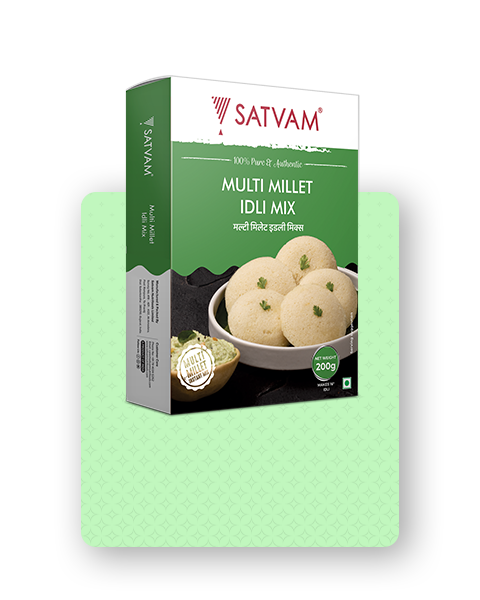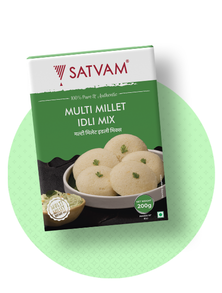 Looking for authentic South Indian taste? Well, then your search only ends at Satvam Multi Millet Idli Instant Mix. Enjoy tasty and soft Idli with great consistency and quality.