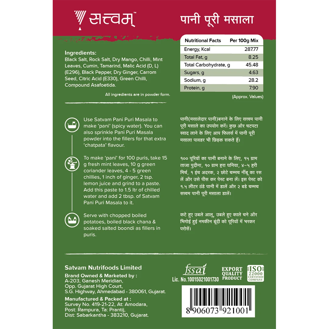 • Satvam Panipuri Masala is an unique blend of fresh ingredients