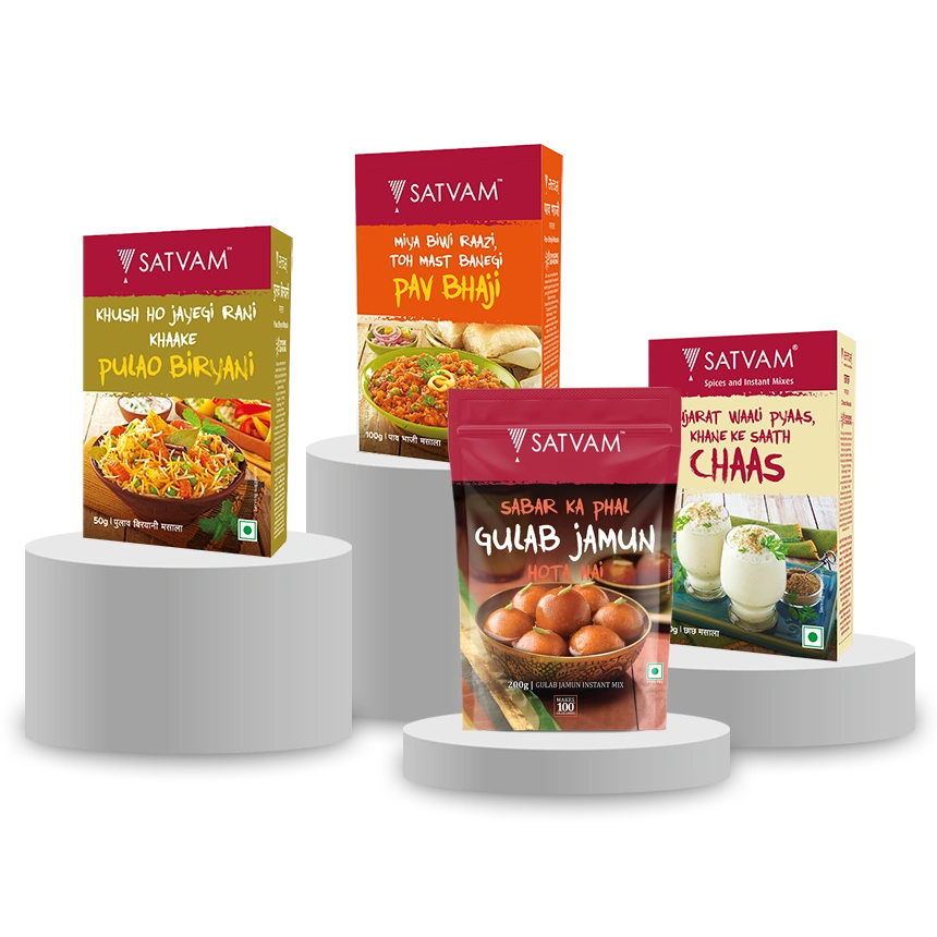 The Mughals did two good things in India, Amazing architecture and “The Biryani”. But what makes biryani special and finger licking, it is the Satvam Pulao Biryani Masala. Made with finest quality raw material so that every grain of your Biryani will give you a royal taste you want. Be it hyderabadi biryani or lucknowi biryani, you will always want Satvam Biryani Masala as a key ingredient.