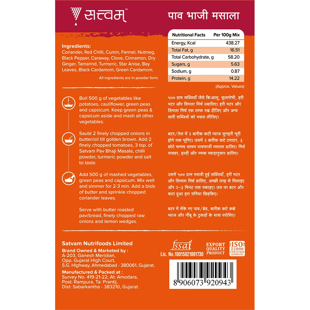 • Satvam Pav Bhaji Masala is an perfect balance of various ingredients