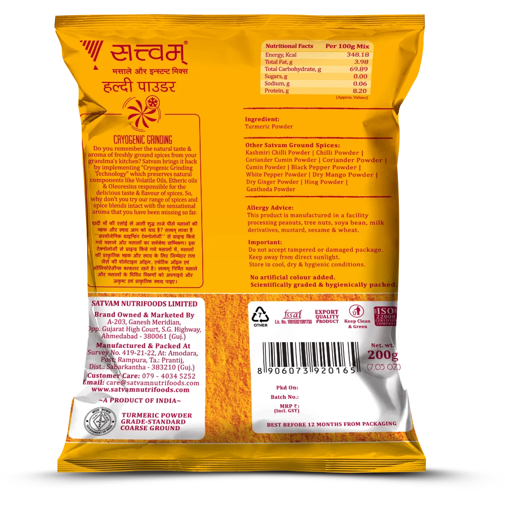 • Satvam Turmeric Powder is grinded by cryogenic technology
